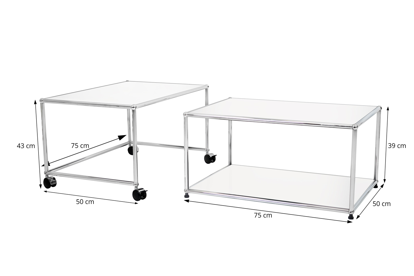 H: 39 x B: 75 x T: 50 cm (Tisch ohne Rollen)
