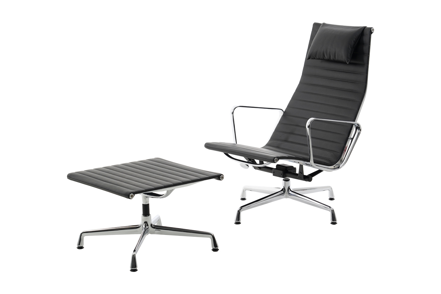 Vitra EA 124 Sessel inkl. EA 125 Ottomane Leder / Schwarz