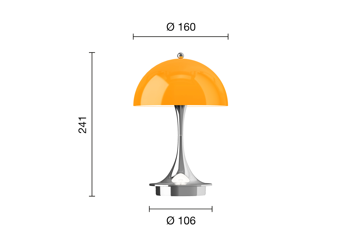 Louis Poulsen Panthella "The Originals" 160 V3 (In- & Outdoor) Tischlampe / Chrome Opal Orange