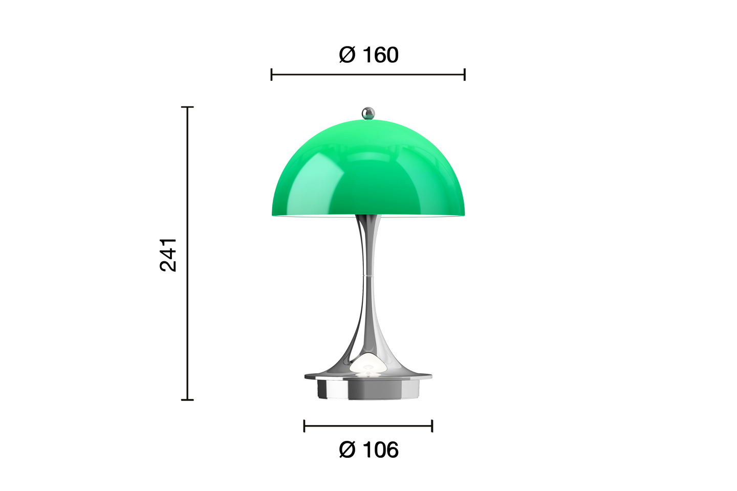 Louis Poulsen Panthella "The Originals" 160 V3 (In- & Outdoor) Tischlampe / Chrome Opal Grün