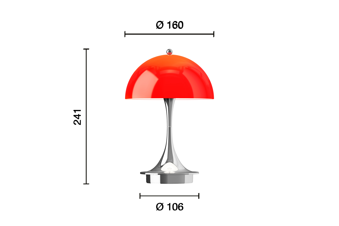 Louis Poulsen Panthella "The Originals" 160 V3 (In- & Outdoor) Tischlampe / Chrome Opal Rot