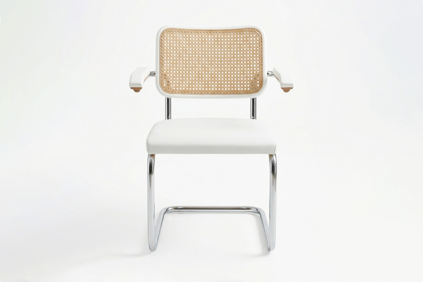 Thonet S 64 SPV Freischwinger Rohrgeflecht / Buche / Leder / Weiß