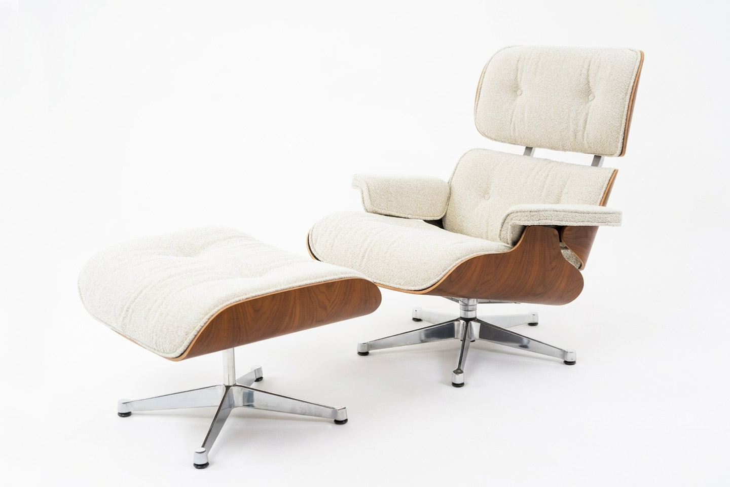Vitra Eames Lounge Chair XL & Ottoman Stoff / Cremeweiß