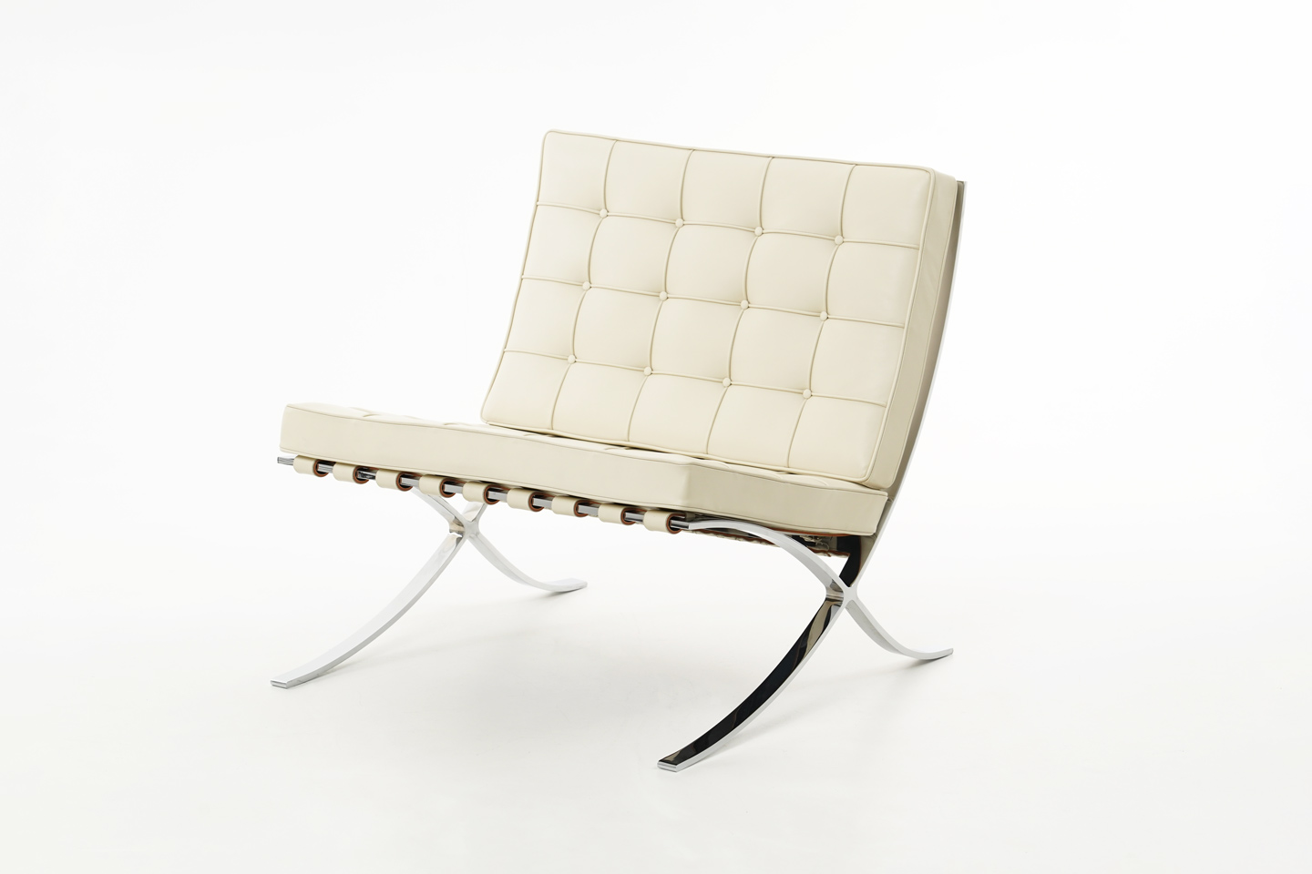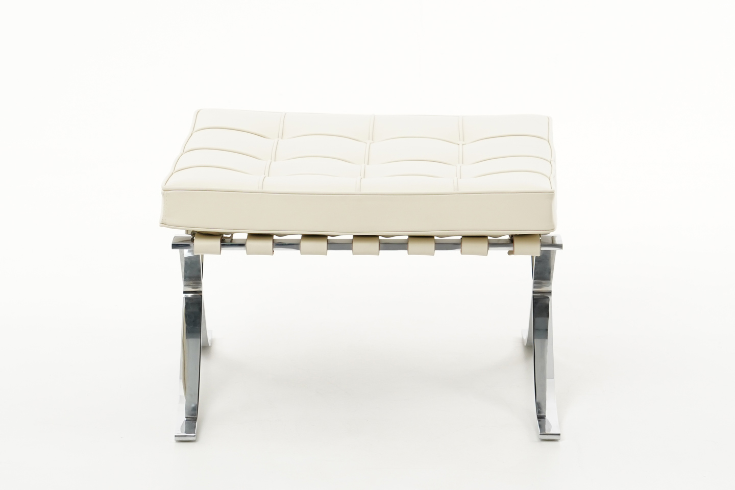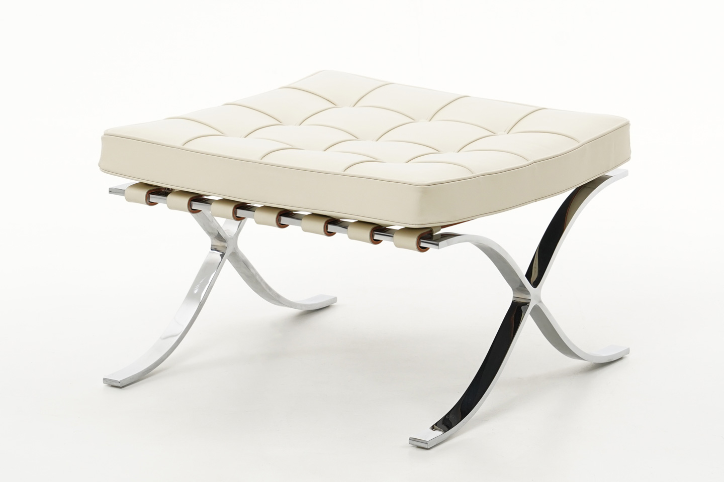 Knoll International Barcelona Fauteuil et pouf en cuir / beige clair