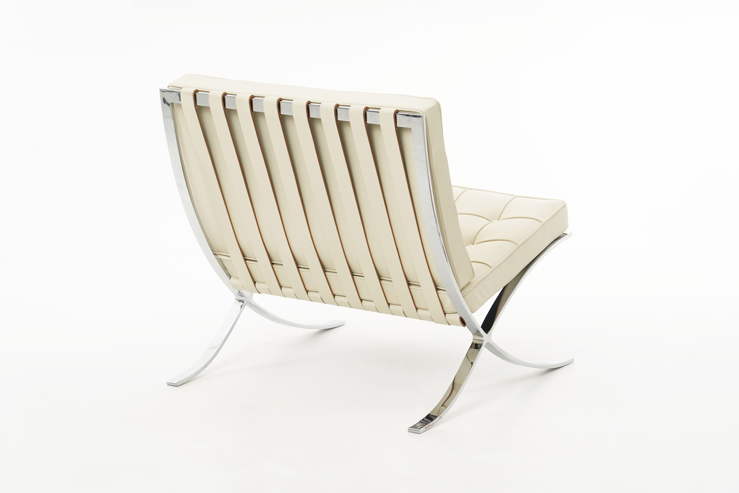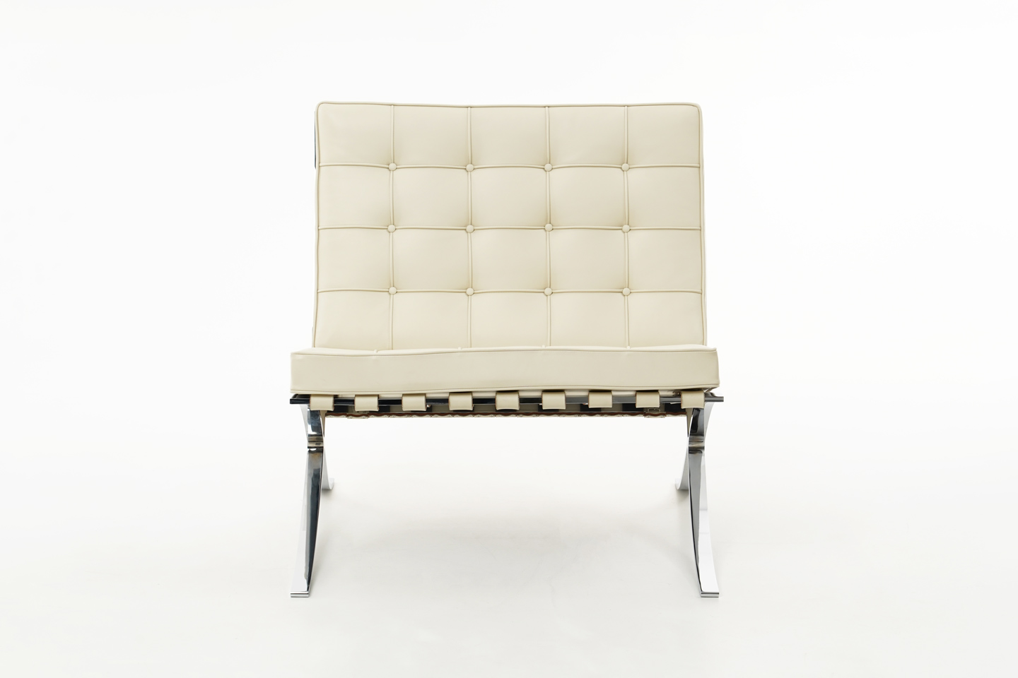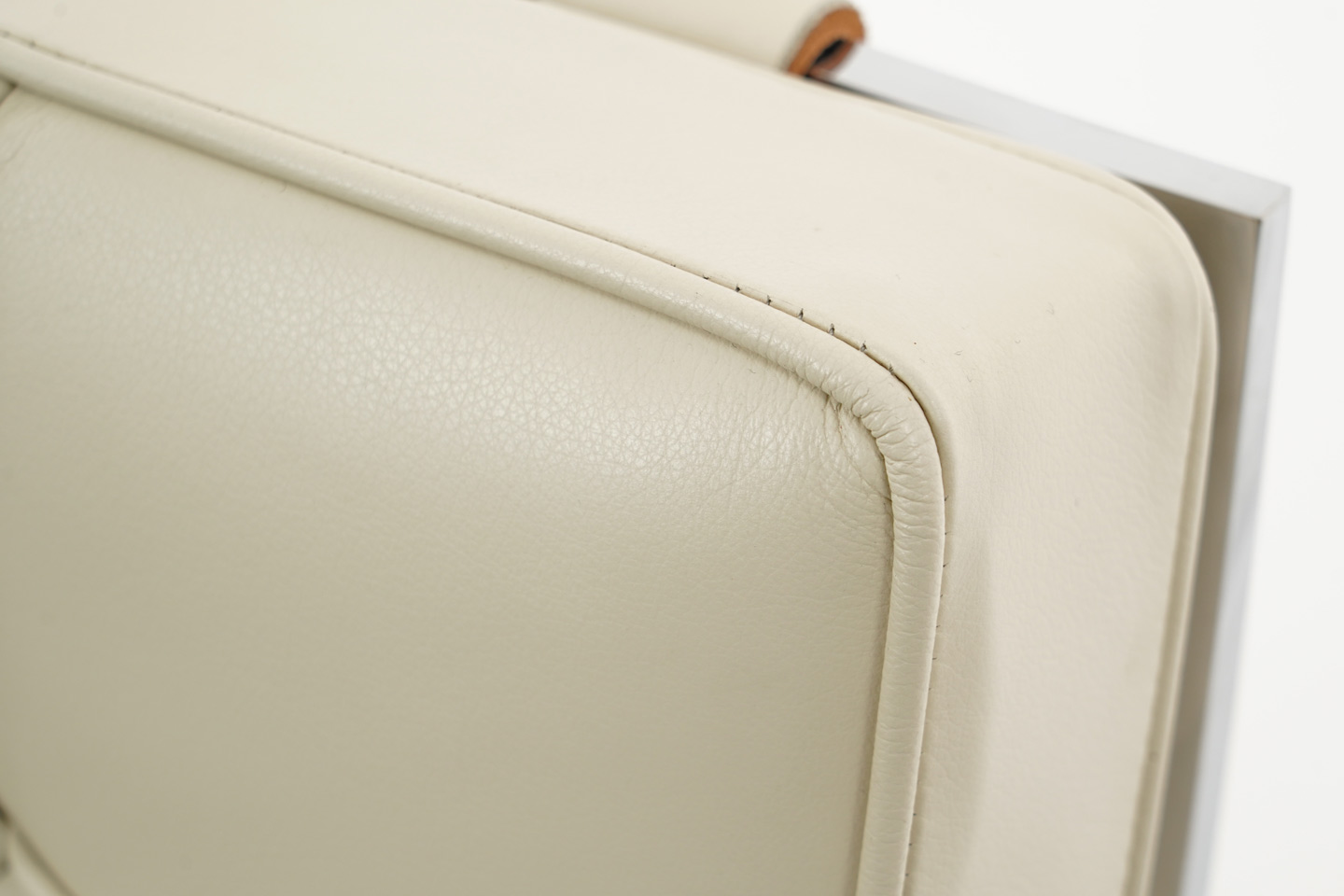 Knoll International Barcelona Fauteuil et pouf en cuir / beige clair
