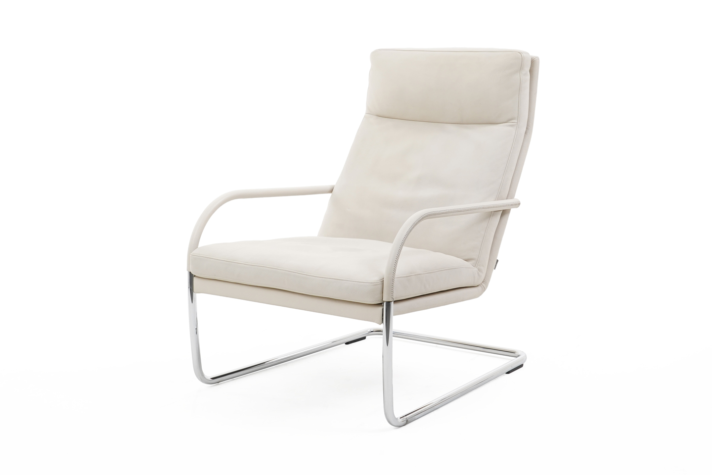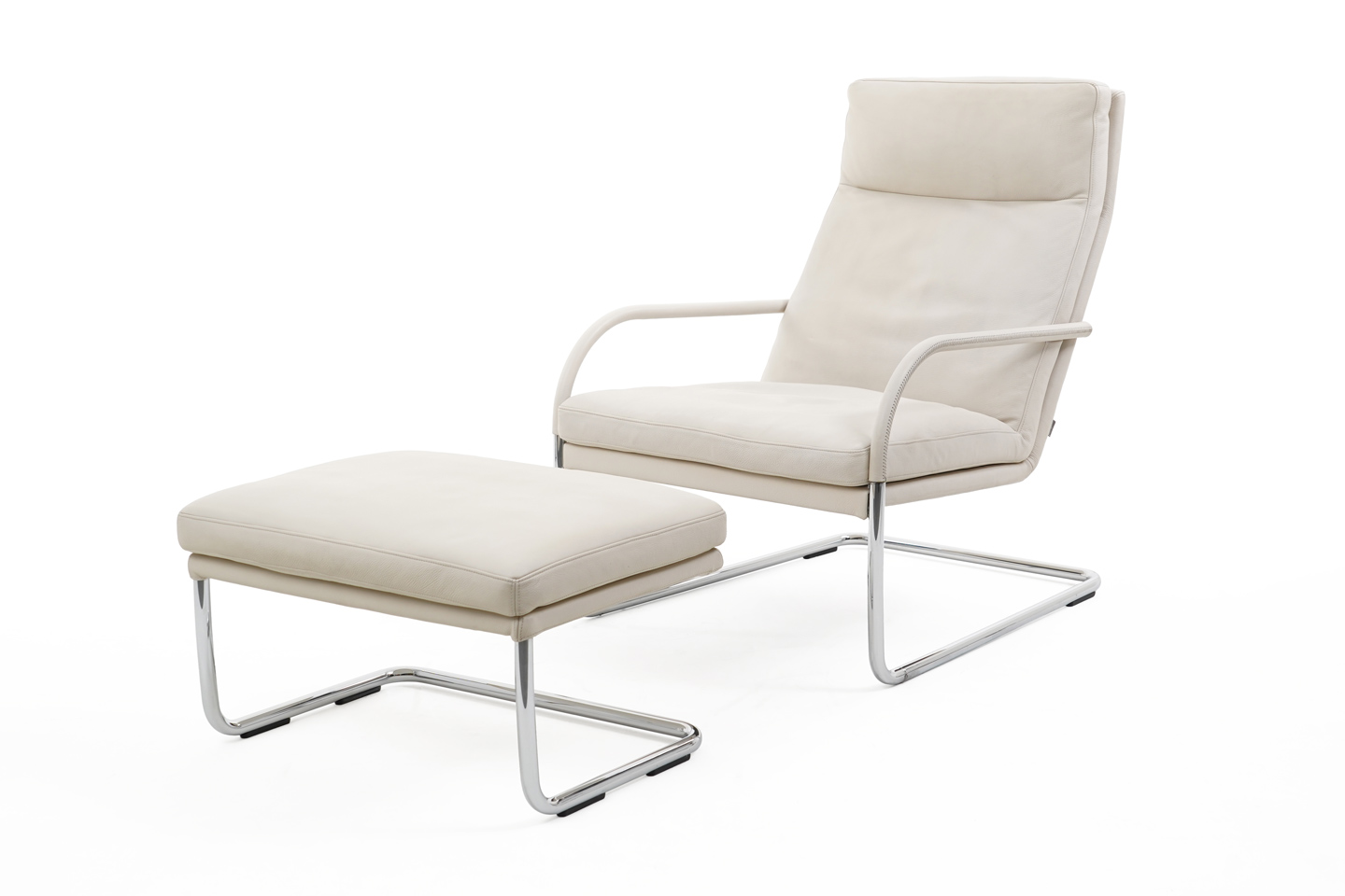 Walter Knoll George Lounge Fauteuil et pouf en cuir / beige