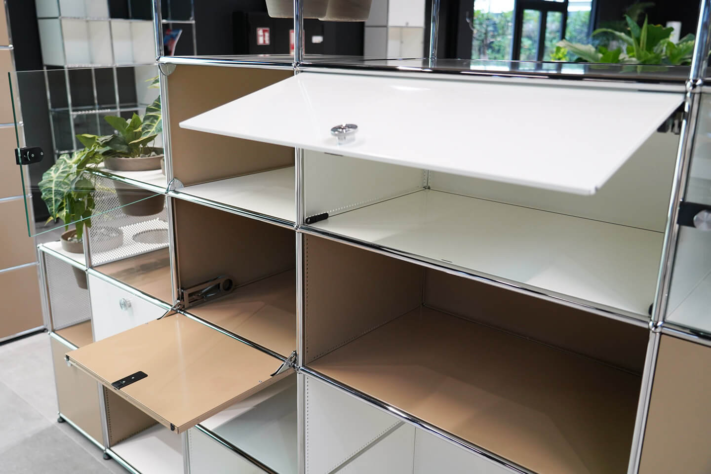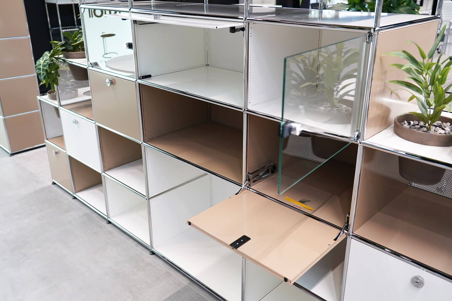 USM Haller woonwand puur wit RAL 9010 / USM beige